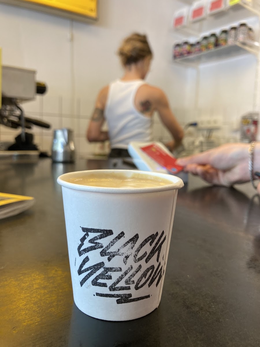 The menu at Black & Yellow Coffee Bar features a carefully curated selection of coffee drinks designed to please every palate. For those who love a classic coffee experience, the Flat White, Cappuccino, and Americano are some of the best choices, offering smooth, rich flavors that highlight the café’s dedication to great coffee. If you're after something a little more adventurous, the Double Shot Cappuccino Oat is a fantastic pick, combining the creamy texture of oat milk with the bold intensity of double espresso shots. Alternatively, you can try the Espresso Tonic, a refreshing twist on your usual espresso, paired with tonic water for a bright, effervescent finish.